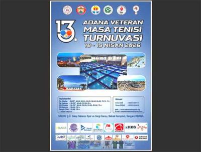 ADANA-13.Veteranlar Masa Tenisi Turnuvası 18-19 Nisan 2026 tarihlerinde ÇİLTAR Adana Masa Tenisi Spor Kulübü tarafından Gençlik ve Spor İl Müdürlüğü ile Çukurova Üniversitesi’nin katkısıyla Çukurova Üniversitesi Sakıp Sabancı Spor ve Sergi Sarayı’nda 41 masada yapılacak.
