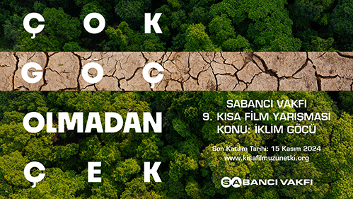 Sabancı Vakfı 9. Kısa Film Yarışması’nın başvuruları 15 Kasım 2024 tarihine kadar www.kisafilmuzunetki.org adresinden devam edecek. Yarışmaya başvuracak eserlerin en fazla 5 dakika uzunluğunda olması ve “İklim Göçü” konusunu ele alması gerekiyor. Eserler, öncelikle ön jüri tarafından değerlendirilecek ve finale kalan en az 10, en fazla 15 eser arasından jüri son değerlendirmeyi yapacak.