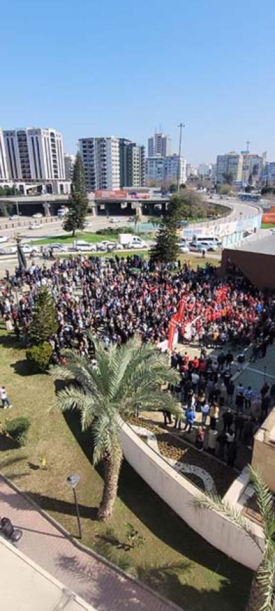 “%3 ZAM KABUL EDİLEMEZ” DİSK Adana 1 Nolu Şube Başkanı Ersoy Kalik Mart 2024’ten bu yana mesai ve sosyal hak alacaklarının, Ocak 2025’ten bu yana ise tam maaşların ödenmediğini iddia ederek, “Hala Seyhan’ın çöpünü toplayan, asfaltını seren, parkını bahçesini düzenleyen, kreşten / mesleki eğitime genç yaşlı tüm Seyhanlıya hizmet eden, cenazemizi kaldıran Seyhan İmar AŞ işçilerinin Toplu İş Sözleşmesi sürecinden söz ediyoruz. Bizler hem memleketimizin durumunu, hem belediyemizin durumunu, hem de kadrolu ve şirket işçisi arkadaşlarımızın durumunu gözeterek; üç yıllık enflasyon + refah payı talepleriyle Toplu İş Sözleşmesi taslağımızı işverene ilettik. İşverenin karşı teklifiyse, 2026 yılı için sadece %3'lük bir zam oldu. Seyhan İmar AŞ işçisinin Mart 2024 döneminden bu yana mesai ve sosyal hak alacakları ödenmemişken, Ocak 2025 döneminden bu yana tam maaşları ödenmemişken teklif edilen zam oranı %3 ve 24 aydır alamadığımız alacakların ödenmesi için de yeni bir 24 ay daha zaman talep ediliyor. İşçimizin daha fazla bekleyecek ne zamanı, ne de sabrı kalmıştır. Bizler bu haklarımız için yaptığımız taleplere, maalesef şu güne dek çözüm bulamadık” ifadelerini kullandı.