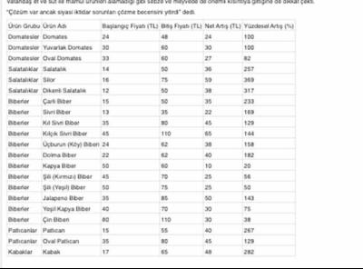 “HALDE FİYATLAR EL YAKIYOR, EMEKLİ BU ÜRÜNÜ NASIL ALACAK?” Gürer, Antalya’nın Kumluca ilçesindeki hal fiyatlarını örnek göstererek gelinen noktaya dikkat çekti. Gürer, “Cuma günü Kumluca halinde yuvarlak domatesin kilosu 60 lira. Çarli biber 50 lira, kılçık sivri biber 110 lira, cin biber 110 lira. Salatalık 50 lira, patlıcan 56 lira, kabak 66 lira, fasulye 100 lira” dedi. Bu fiyatların hal çıkış fiyatları olduğunu vurgulayan Gürer, “Bu ürünler Ankara’ya, İstanbul’a gelinceye kadar nakliye de ekleniyor. Rafa girdiğinde emekli, asgari ücretli bu ürünleri nasıl alacak?” diye sordu.