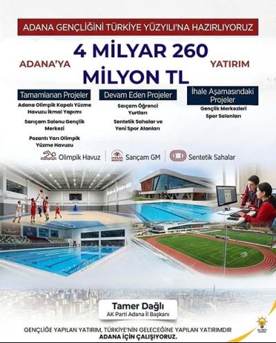 AK Parti Adana İl Başkanı Tamer Dağlı, Adana genelinde Gençlik ve Spor alanında hayata geçirilen yatırımlara ilişkin açıklamalarda bulundu.
