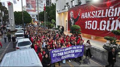 “Kadınların Gücüne Güç Katan Zeydan Başkanımıza Özgürlük” yazılı pankart taşıyan binlerce kadın çalışan, sloganlar ve alkışlarla özgürlük talebinde bulundu. Adana Büyükşehir Belediyesi’nin kadın çalışanları ve bürokratları 5 ayı aşkın süredir tutuklu bulunan ve görevinden uzaklaştırılan Başkan Zeydan Karalar’a özgürlük isteğiyle yürüyüş yaptı. Eylem yapan kadınlara, Atatürk Caddesi’nden geçen özel halk otobüsleri ve toplu taşıma minibüsleri kornalarla destek verdi. Adana Büyükşehir Belediyesi yanındaki Sanatçılar Parkı önünden başlayan yürüyüş, Adalet Nöbeti’nin tutulduğu çadırın önünde son buldu. Kadınların ekonomik olarak daha güçlü olmasına yönelik projeler üreterek, meslek edinmelerine ve istihdam edilmelerine olanak sağlayan Başkan Zeydan Karalar’ın, kadın kooperatifleri kurdurmasına ve “Ben kadın tarafıyım” söylem ve eylemlerine binaen; “Kadınların Gücüne Güç Katan Zeydan Başkanımıza Özgürlük” pankartı taşıyan Büyükşehir çalışanı kadınlar; “Kadınlar Burada Başkanının Yanında, Zeydan Başkan Onurumuzdur, Durmadan Yılmadan Zeydan Karalar, Zeydan Başkan Yalnız Değildir, Zeydan Adana Gibi Başkan” sloganları atarak yürüdü.