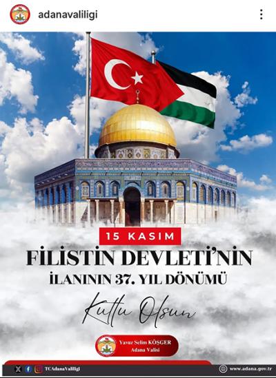 | Adana Valisi Köşger'den Filistin'e destek! | ||