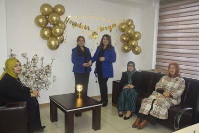 Başkan Hacer Söylemez’in bugün çok konukları vardı. Makam odasının duvarını görsellerle donatan başkan ve ekibi, gelen konuklarla hatıra fotoğrafı çektirdi. Ceyhan’dan Ak Parti kurucularından Bayan Muhtarda fotoğraf kadrajında yer alarak, çalışmalara Ceyhan’da devam edeceğinin altını özenle çizdi.