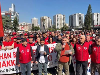 “%3 ZAM KABUL EDİLEMEZ” DİSK Adana 1 Nolu Şube Başkanı Ersoy Kalik Mart 2024’ten bu yana mesai ve sosyal hak alacaklarının, Ocak 2025’ten bu yana ise tam maaşların ödenmediğini iddia ederek, “Hala Seyhan’ın çöpünü toplayan, asfaltını seren, parkını bahçesini düzenleyen, kreşten / mesleki eğitime genç yaşlı tüm Seyhanlıya hizmet eden, cenazemizi kaldıran Seyhan İmar AŞ işçilerinin Toplu İş Sözleşmesi sürecinden söz ediyoruz. Bizler hem memleketimizin durumunu, hem belediyemizin durumunu, hem de kadrolu ve şirket işçisi arkadaşlarımızın durumunu gözeterek; üç yıllık enflasyon + refah payı talepleriyle Toplu İş Sözleşmesi taslağımızı işverene ilettik. İşverenin karşı teklifiyse, 2026 yılı için sadece %3'lük bir zam oldu. Seyhan İmar AŞ işçisinin Mart 2024 döneminden bu yana mesai ve sosyal hak alacakları ödenmemişken, Ocak 2025 döneminden bu yana tam maaşları ödenmemişken teklif edilen zam oranı %3 ve 24 aydır alamadığımız alacakların ödenmesi için de yeni bir 24 ay daha zaman talep ediliyor. İşçimizin daha fazla bekleyecek ne zamanı, ne de sabrı kalmıştır. Bizler bu haklarımız için yaptığımız taleplere, maalesef şu güne dek çözüm bulamadık” ifadelerini kullandı.