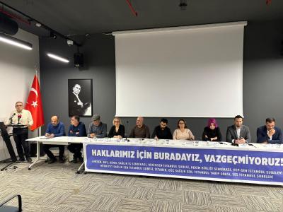 “Artık yeter. Siz yönetemiyorsunuz, biz tükeniyoruz. Haklarımız için buradayız, vazgeçmiyoruz” sloganıyla İstanbul Tabip Odası’nda basın toplantısı düzenlendi. Sağlık meslek örgütleri; aile hekimliği sisteminde artarak devam eden problemleri, aile hekimleri ile ASM çalışanları ve hastalar açısından var olan sorunları ve çözüm önerilerini bir kez daha anlatmak üzere İstanbul Tabip Odası’nda bir araya gelerek basın toplantısı düzenlediler. Toplantıya İstanbul Tabip Odası temsilcilerinin yanı sıra; Aile Hekimliği Çalışanları Sendikası (AHESEN), Birlik ve Dayanışma Sendikası (BDS), Genel Sağlık İş Sendikası, Hekimsen İstanbul Şubesi, Hekim Birliği Sendikası, HEP-SEN İstanbul Şubeleri, Hürriyet Sağlık Sen İstanbul Şubesi, İstanbul Aile Hekimliği Derneği (İSTAHED), Güç Sağlık Sen ve SES İstanbul Şubeleri katıldı. İstanbul Aile Hekimliği Derneği (İSTAHED) Başkanı Dr. Sercan Ahmet Uluç toplantıda yaptığı konuşmada, aile hekimlerinin sahada ve medyada uzun süredir dile getirdiği sorunların görmezden gelindiğini belirterek, Sağlık Bakanlığı’na sert ifadelerle seslendi: