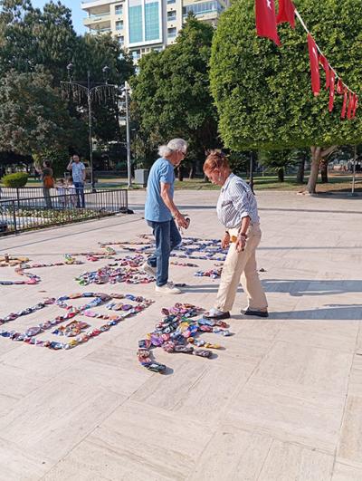Doruk Gazetesi Sahibi, gazeteci, yazar ve aktivst olan Fatoş Tekbaş iklim yasasına dikkat çekmek için 18 Ekim 2025 Günü Atatürk Parkı, heykelin önünde, kola atık kutularından dünyamızın getirilmek istendiği şekliyle, ünlü Ressam İsmet Çabuk’la birlikte mizansen resim yaptı.