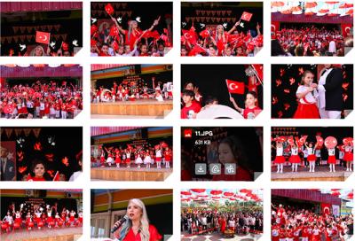 Etkinlik boyunca kırmızı-beyaz renkli şemsiyelerle süslenen okul bahçesi, Cumhuriyet coşkusuna görsel bir şölen kattı. Miniklerin Cumhuriyet’e olan sevgisi ve bağlılığı, izleyicilerden tam not aldı.