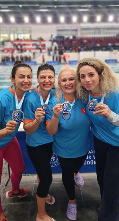 Büyüksehir Belediyesi İştiraklar ve Ulaşım A.Ş Daire Baskanı Kadir Özdemir, Büyükşehir Belediyesi olarak tüm sporlara büyük önem verdiklerini, yeni olmasına rağmen veteran yüzücülerin 63 madalya kazanmalarını çok değerli bulduğunu soyledi. Başarıda büyük emekleri olan antrenör ve takım sorumluları Sami Akgöz ve Neşe Atmış ve özveriyle yarışan sporcuları kutlayan Özdemir şöyle devam etti; "Kısa zamanda hazırlık yapan sporcularımızın böyle büyük müsabakada hem de çok güclü rakiplere ragmen 63 kez kürsüye çıkmaları çok anlamlı. Değerli Büyüksehir Belediye Başkanımız Zeydan Karalar'ın 7 ay haksız ve hukuksuz bir şekilde cezaevinde tutulması moralimizi bozmuş, keyfimizin kaçmasına neden olmuştu.. Zeydan başkan geçen hafta tahliye edildi.. Antrenör ve sporcularımız ile birlikte 63 madalyayı Zeydan başkana en uygun zamanda götüreceğiz. Bu arada başarılı veteran yüzücülerei desteğimizi artıracağız. Ayrıca farklı illerde yapılacak müsabakalara gitmelerine öncülük edeceğiz" KİMLER MADALYA KAZANDI Antrenor ve takım sorumluları Sami Akgoz ve Neşe Atmış, sporcuların egitimli ve deneyimli olduğunu, aile ortamında, paylaşma ve dayanışma ile başarı sağladıklarını ifade ettiler. Büyükşehir Belediyespor’da ilk üçe girerek madalya kazanan sporcular şunlar; Zeki Tanatar, Kasım Alkaya, Mehmet Koca, Ece Turgut, Nilüfer Duman, Lütfi Yağcı, Seda Dinçer, Suat Gürışık, Serdar Sanrı, Alican Altınkılıç, Serkan Toyganözü, Neşe Atmış, Erkan Tokyüurekli, Yiğit Coşkun ve Ergün Tanrısınatapan