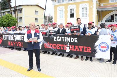 Siverek Ahmet Koyuncu Mesleki ve Teknik Anadolu Lisesi’nde okulun eski bir öğrencisi tarafından gerçekleştirilen saldırı, eğitim camiasını ayağa kaldırdı. Eğitim-Bir-Sen öncülüğünde Türkiye genelinde iş bırakma kararı alan eğitimciler, Adana İstasyon Meydanı’nda bir araya gelerek okullarda artan şiddet olaylarına tepki gösterdi. Geniş katılımlı eylemde okunan basın açıklamasında eğitimcilerin can güvenliğine dikkat çekildi. Kalabalık grup adına açıklamayı yapan Eğitim-Bir-Sen Adana Şube Başkanı Mustafa Sarıgeçili, şiddetin eğitim yuvalarını rehin aldığını belirterek yetkilileri acil önlem almaya çağırdı.