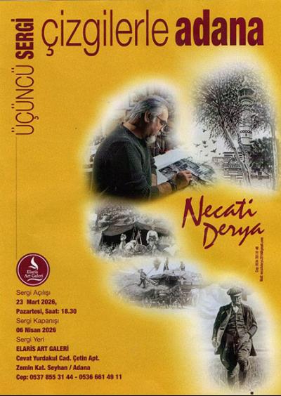 Matbaada çalışırken İstanbullu grafiker Cüneyt Tümer'den grafik tekniğini kavradığını söyleyen Necati Derya, orada film, montaj, renk ayrım işleri ile ofset baskı tekniğini öğrendi. Bu çalışma yılları içinde Adana'daki yazlık sinemalara fener afişleri çizerken bir yandan da tutku haline getirdiği çizgi roman ve çizgi roman kapakları çizmeyi sürdürdü. 1980'de matbaadan ayrılıp abi dediği Necdet Anagül ile kendi grafik atölyelerini açtılar ve orada beş yıl matbaa grafikerliği, tabelacılık, reklamcılık, bilboard duvar ressamlığı işlerini başarıyla sürdürdüler. Bu çalışma süreci içinde bir yandan da yerel gazetelere çizgi roman hazırlamayı sürdüren sanatçımızın, ilk çizgi romanı "Vahşi Dönüş" adı ile Güney Haber gazetesinde yayınlandı. Aynı romanın fotoromanının çekilip yayınlanması ile başlayan fotoroman dizi çalışmaları Yeni Adana gazetesinde yayınlanan "Komiser Murat" ile devam etti. Daha sonraki dönemlerde aynı anda 3 gazetede birden romanları yayınlanmaya başladı. 1985'te askere giden Necati Derya asker dönüşü, kendi atölyesi olan Derya Grafik'i kurdu. Derya Grafik'te serüveni 10 yıl sürdü. Matbaa grafikerliği, serigrafi ve klişe işlerinde ustalaşan sanatçı, Gaziantep'te bir klişe atölyesi kurarak mesleğini orada devam ettirdi, Gaziantep'te 12 yıl süren çalışma süreci içerisinde bir yandan da oranın yerel gazetelerinde çizgi romanları yayınlandı. 42 yıl Adana'da "Çizgilerle Adana” adıyla açtığı ilk kişisel sergisi, çalışma azmini kamçılayınca, çizmeyi sürdürerek 2022 yılında yine Adana'da koleksiyonun ikinci sergisini açtı. Adana'yı çizerek başladığı çalışmalar Adana ile sınırlı kalmadı ve yaşadığı diğer şehir olan Gaziantep'i çizerek "Çizgilerle Ayntap" adıyla Gaziantep'te üçüncü sergisini açıp kendi ekolünü yaratan sanatçı, yaşadığı şehir olan İstanbul'u da çizmeye başlayarak "Bir Derya'dır İstanbul" adıyla İstanbul'da açtığı birden fazla sergiyle tanınırlığını çok üstlere taşıdı.. Adana tutkusu peşini bırakmıyordu.. Bu sevgi onu yine Adana'ya yönlendirerek, iki yıl önce üçüncü kez tekrar Adana'yı çizmeye başladı... Bunu, açtığı üçüncü “Çizgilerle Adana" sergisi ile Adanalı sanatseverlerle buluşturdu. Adana sergi koleksiyonunun üçüncüsü olan "Çizgilerle Adana" sergisini 23 Mart 2026 tarihinde, Adana, Elaris Art Galeris'nde açan sanatçı, tekrar Adana'lı sanatseverlerle buluşmanın sevinç ve gururunu yaşadı. Sergi 6 Nisan 2026 tarihine kadar açık kalacak. Cevat Yurdakul Caddesindeki Elaris Art Galerisi'ndeki seçkin eserlerinden oluşan bu sergi, kaçırılmaması gereken bir sergi olarak öneriliyor.