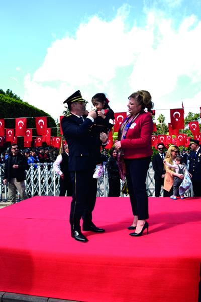 Adana İl Emniyet Müdürü Arıkan daha sonra gurur gününde bayraklarla donatılan araçların, bu anlamlı güne coşku ve anlam katan korteji eşiyle izledi.