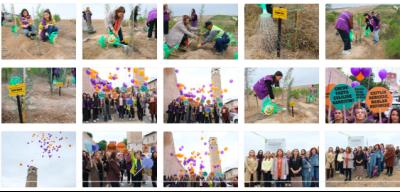 Kadınlar şiddetsiz bir dünya için fidan dikti, mor ve turuncu balonları gökyüzüne bıraktı. 25 Kasım Kadına Yönelik Şiddetle Uluslararası Mücadele Günü kapsamında, Adana Büyükşehir Belediyesi’nin 16 günlük attivizm takvimi hayata geçiriliyor. Başkan Zeydan Karalar’ın kadın-erkek eşitliğine verdiği önemin bir sonucu olarak oluşturulan Adana Büyükşehir Belediyesi Kadın ve Aile Hizmetleri Dairesi’nin özel gün dolayısıyla gerçekleştirdiği etkinlikler art arda halkla buluşuyor. FİDANLAR TOPRAKLA BULUŞTU Adana’da şiddet sonucu yaşamını yitiren kadınların anısını yaşatmak için Gökbuket Köyü / Sarıçam mevkisinde oluşturulan “25 Kasım Kadına Yönelik Şiddetle Mücadele Ormanı–2”de fidanlar toprakla buluşturuldu.