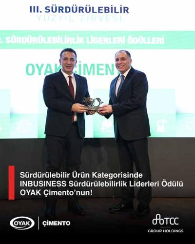 OYAK Çimento, InBusiness Dergisi tarafından düzenlenen “Sürdürülebilirlik Liderleri Ödülleri”nde, çevre dostu ürün portföyü ve karbon azaltım taahhütleriyle ödüle layık görüldü. Türkiye çimento sektörünün sürdürülebilirlik odaklı dönüşümüne öncülük eden OYAK Çimento, başarılarına bir yenisini daha ekledi. Ekonomi dünyasının nabzını tutan InBusiness Dergisi tarafından bu yıl üçüncü kez gerçekleştirilen ve sürdürülebilir bir gelecek için ilham veren kurumları ödüllendiren Sürdürülebilirlik Liderleri Ödülleri’nde OYAK Çimento, kazanan kurumlar arasında yer aldı. Çevre, Şehircilik ve İklim Değişikliği Bakanlığı ile InBusiness Dergisi editörlerinden oluşan seçici jüri; yaklaşık 200 şirketin sürdürülebilirlik raporlarını ve somut çıktılarını titizlikle inceledi. Yapılan değerlendirme sonucunda OYAK Çimento; "Yüksek Katkılı Düşük Emisyonlu Ürünler" portföyü ve çimento ürününün tonu başına emisyon azaltımı konusundaki iddialı taahhütleri ile bu prestijli ödülün sahibi oldu.