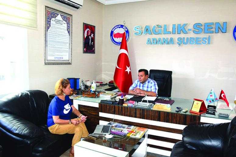 Doruk; Sendikanız neyi amaçlıyor? Nennioğlu; Sendikanın amacı; temel insan haklan ilkelerine dayanan, egemenliğin kayıtsız şartslz millete ait olduğu, millet iradesine de milletin seçtiği idareye de saygı gösterilen, katılımcı demokrasinin yerleştiği, özgür birey ve sivil toplum örgütlerine gerçek anlamda var olma ve düşünce üretip teklifler sunma, hak ve imkanların hayata geçirildiği, kimsenin Doruk; Sendikacılıkta çok etkinsiniz, bunu neye borçlusunuz? Nennioğlu; Sağlık çalışanlarına sözümüz var. Onun için hiç yerimizde duramıyoruz. Sağlık çalışanlarının hak ve menfaatlerini korumak için her gün sahada olmaya çalışıyoruz onların sorunlarını toplayıp, rapor edip il Sağlık Müdürlüğüne Adana Valiliğine veya Genel Merkezimize olmadı Sağlık Bakanlığı ulaştırıyoruz. Bununla ilgili basın açıklaması mecburen etkin bir sendikacılık yapmak zorundayız ve yapıyoruz. Sağlık alanında bütün gelişmeleri takip edip, üyelerimize bildirme gibi bir sorumluluğumuz var. Doruk; Bugüne kadar sağlıkta hangi sorunların çözümüne yardımcı oldunuz? Nennioğlu; Bugüne kadar sağlık çalışanlarının birçok sorununu çözdük. Ama size bunlardan sadece iki örnek verebilirim. Özellikle banka promosyonlarında çok etkin rol alarak sağlık çalışanlarının en üst düzeyde promosyon almasını, 1. basamakta çalışan sağlık çalışanlarının ayda 60 saat nöbet ücreti almasını, ayrıca tüm hastanelerde döner sermaye komisyonları katılarak en üst düzeyden dağıtılmasını sağladık. Bu tür çalışmalarımız sürüyor.